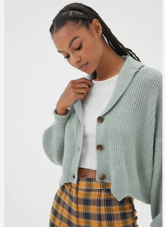 Urban Outfitters Green Cable Knit Cropped Cardigan - Small