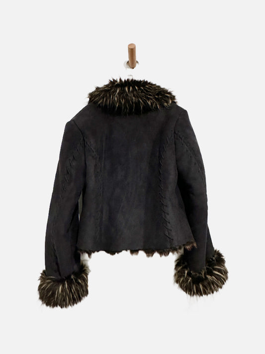 Merchant Black Faux Suede Fur Trim Jacket - Small
