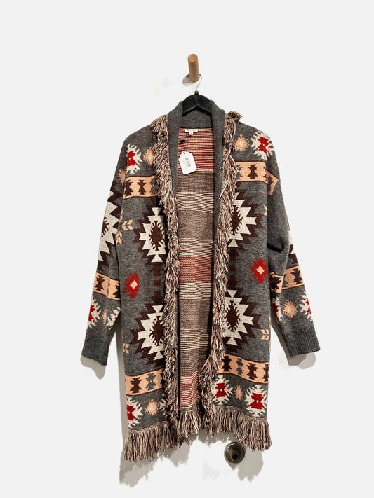 Abercrombie & Fitch Gray and Black Stripe Button Down Sweater - Small