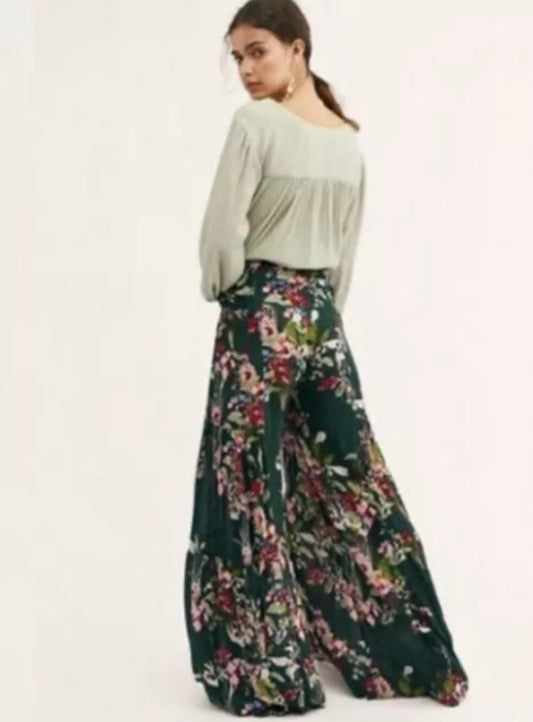 Free People Green Floral Wide Leg Pants - Medium