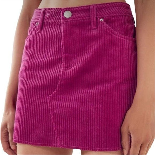 Urban Outfitters BDG Corduroy Fuchsia Raw Hem Mini Skirt Size Medium
