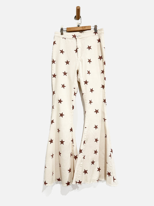 Peach Love Cream w/Brown Star Bell Bottom Jeans - Medium