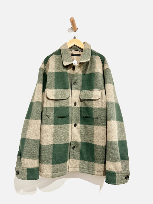 Uniqlo Men’s Green and Brown Plaid Wool Shacket - Medium
