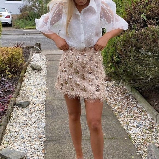Zara Blogger’s Favorite Pink Sequin Feather Mini Skirt Size Medium