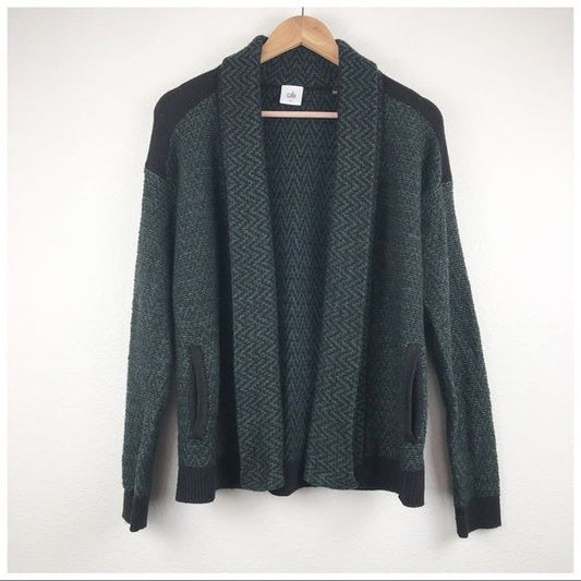 CAbi Fireside Chevron Green Knit Open Cardigan Size Medium