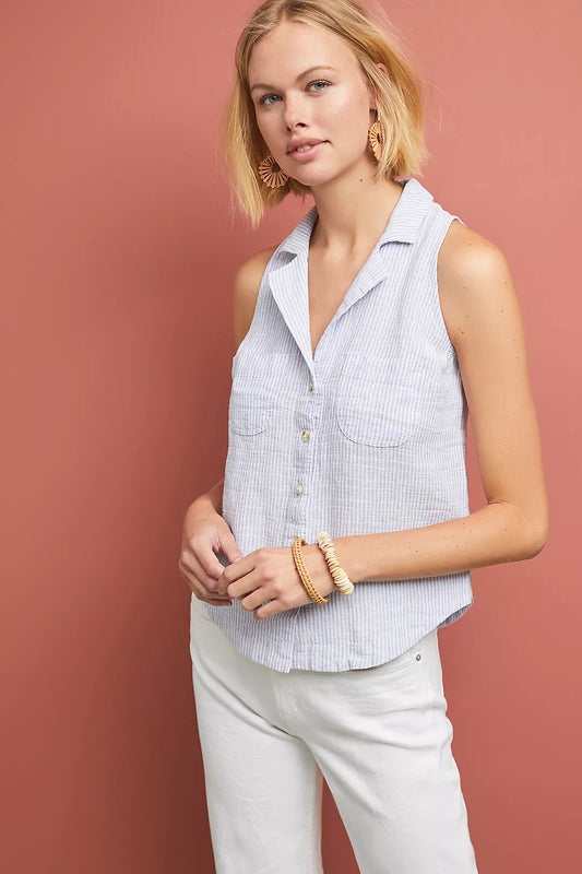 Anthropologie Maeve Blue and White Stripe Button Down Tank - 4