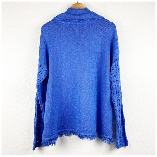Chico’s Tiffany Fringe Cowl Neck Pullover in Gulfstream Blue Size XL/3