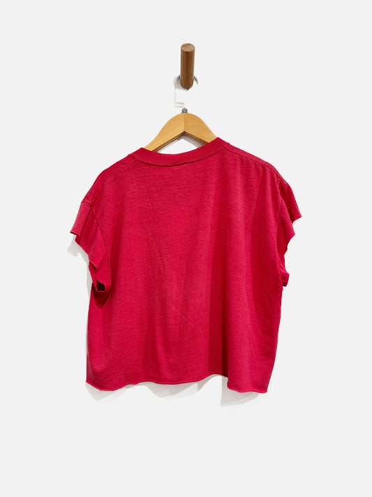 $$ Jerzees Vintage Pink Whale Graphic Crop Top - Large