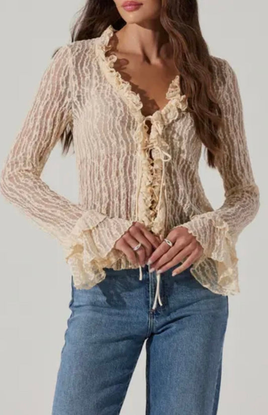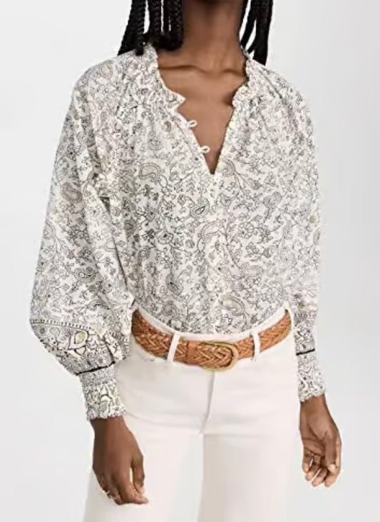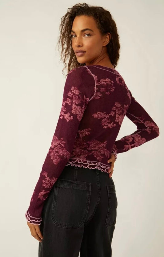 Free People Garner Purple and Pink Floral LS Top - Medium