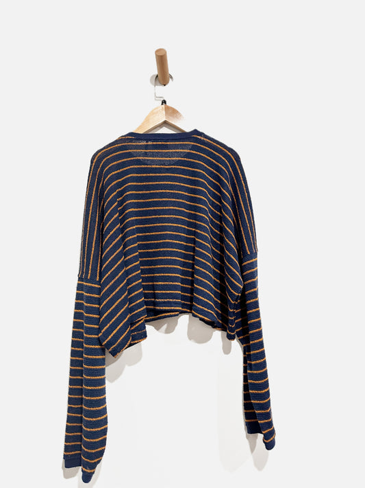 UO Out From Under Blue & Yellow Striped Crop Top - Large