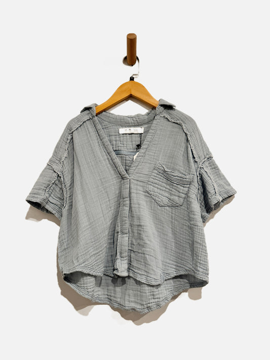 Free People Full of Light Blue Muslin Cotton SS Button Down - Small