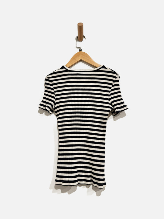 Theory Navy and White Stripe Ribbed SS Top - Small