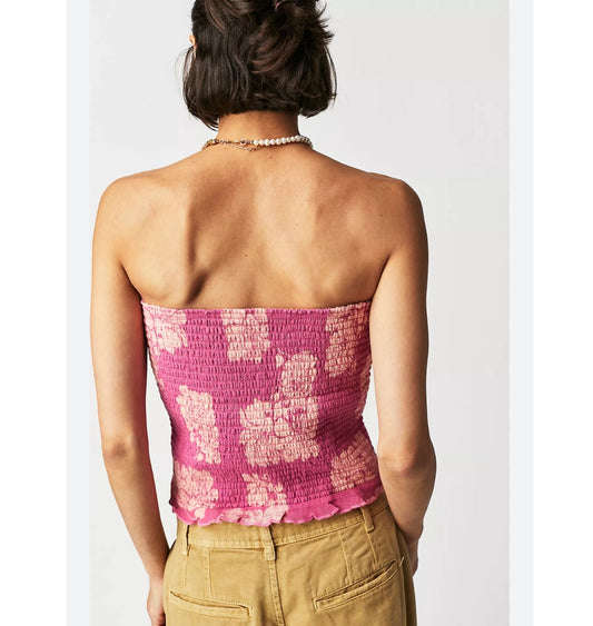 Free People Poppy Pink Floral Mesh Tube Top - Large