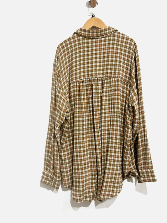 Anthropologie Pilcro Green and Pink Plaid Button Down Top - Large