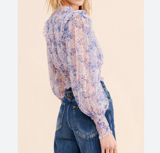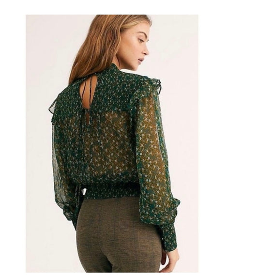 Free People Twyla Purple Floral Sheer Blouse - Medium