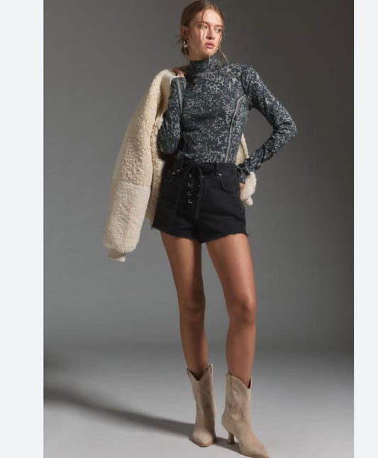 Anthropologie Pilcro Black Leopard Print Exposed Seam LS Top