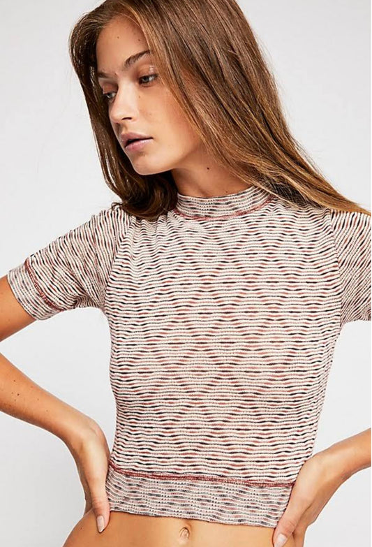 Free People Intimately All Yours Brown Patterned SS Top - XS