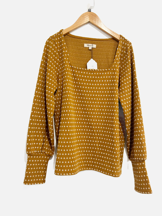 Madewell Yellow Floral Jacquard Square Neck Top - Small