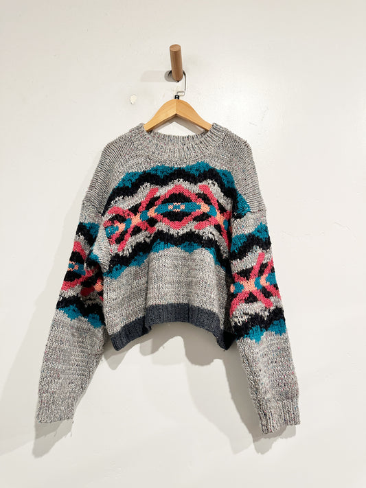 O’Neill Cream/Navy/Orange Patterned Fleece Pullover -XS