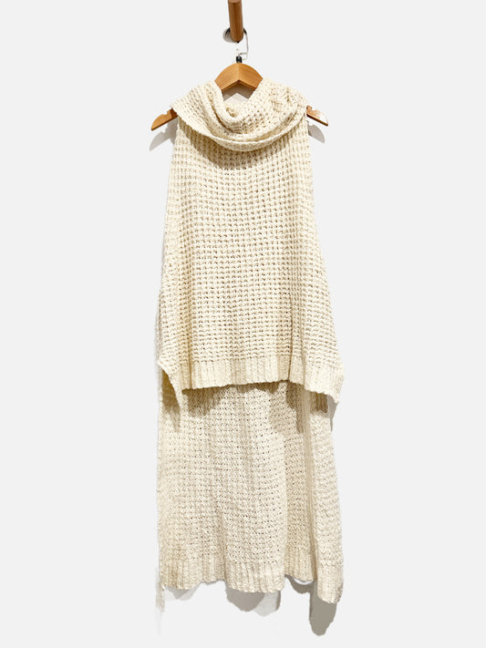 Free People Skyscraper Cream Cableknit Turtleneck Vest - Small