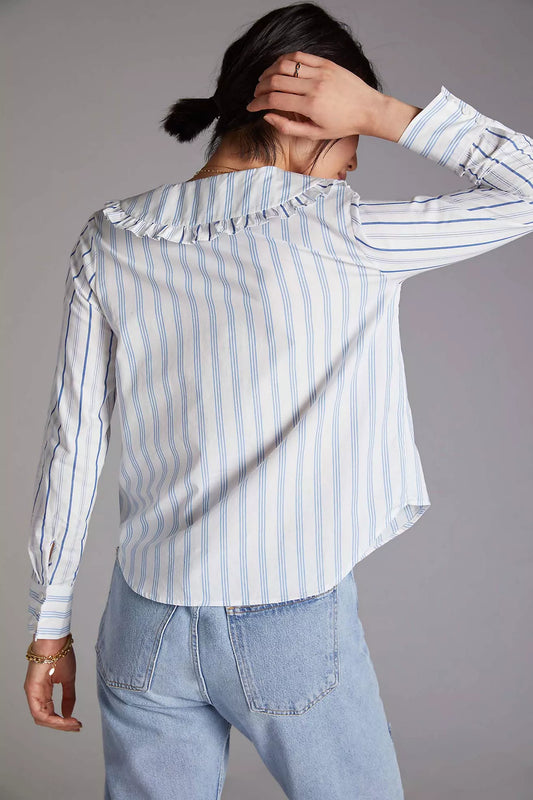 Anthropologie Maeve Blue & White Collar Blouse - 0