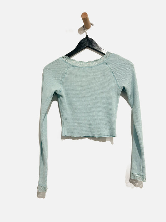 Free People Blue Cropped Waffle Knit LS - Small