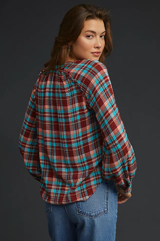 Anthropologie Pilcro Red and Blue Ruffle Blouse - Large