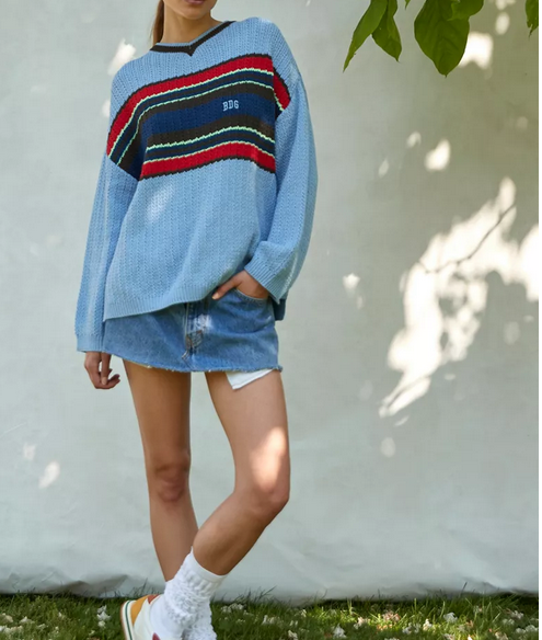 BDG Blue Stripe V Neck Sweater - Medium