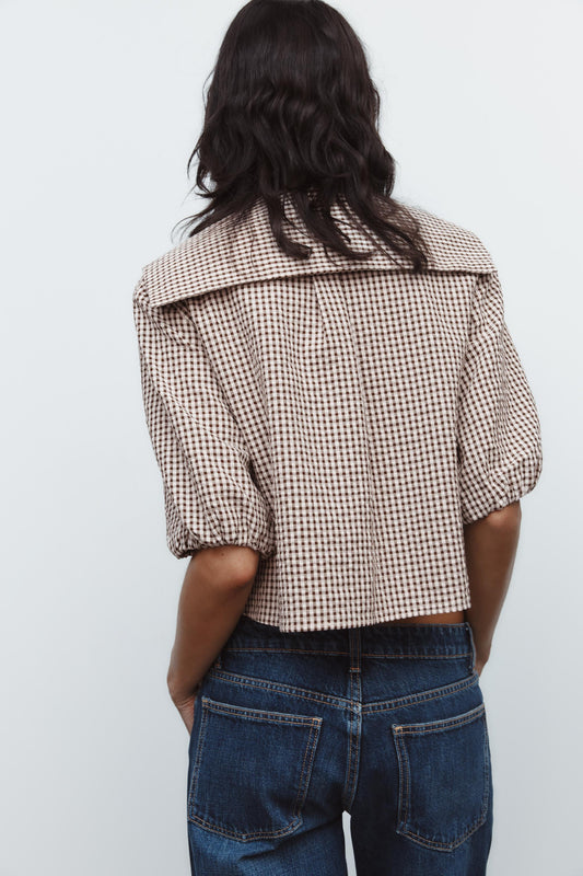 Sold outZara Brown Gingham Blouse - Large