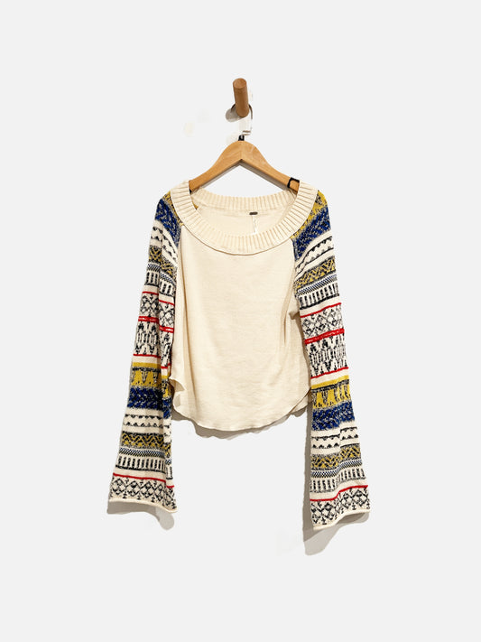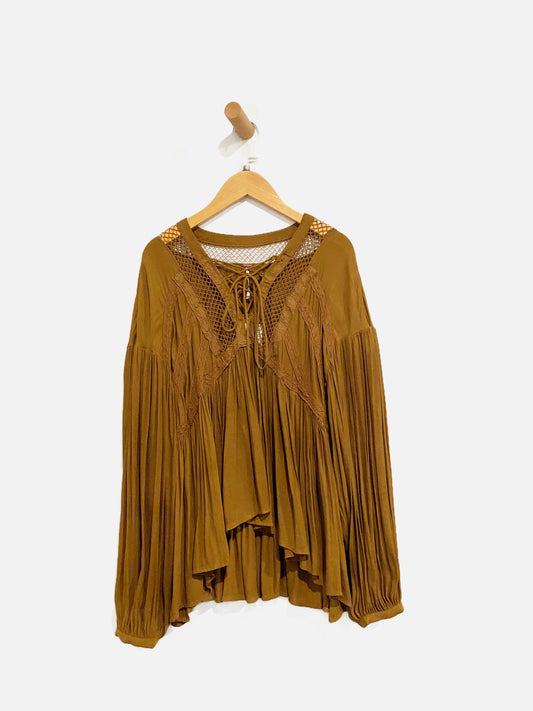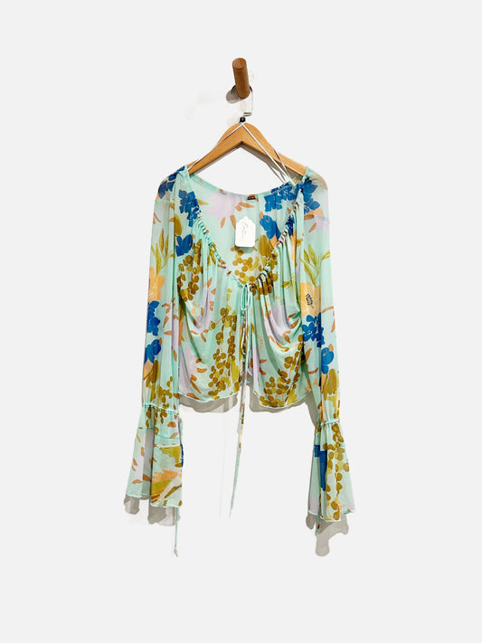 Free People of Paradise Blue Mesh Bell Sleeve Top