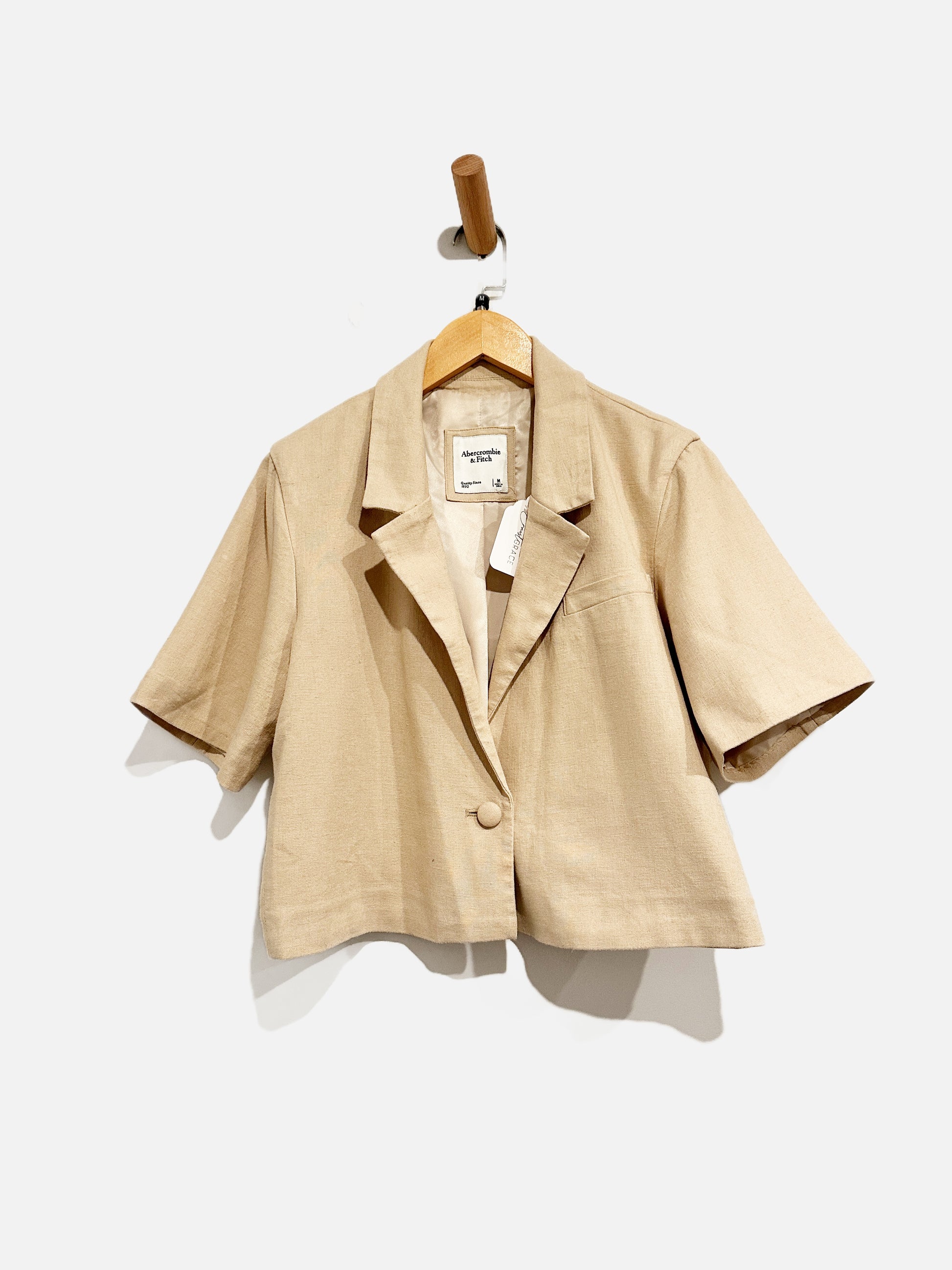 Abercrombie & Fitch Beige Linen Short Sleeve Blazer - Medium