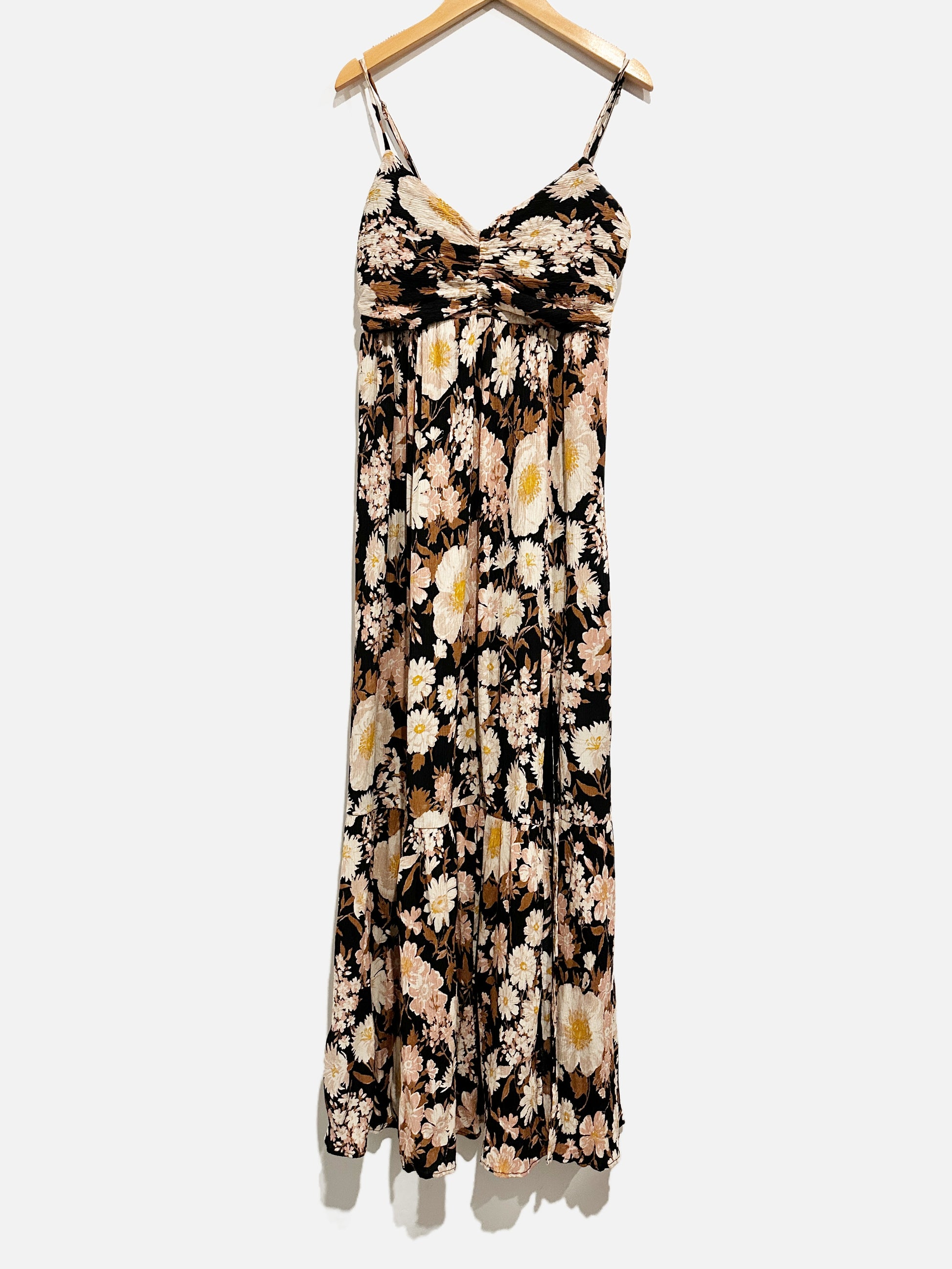Abercrombie & Fitch Black and Brown Floral Print Maxi Dress - MT