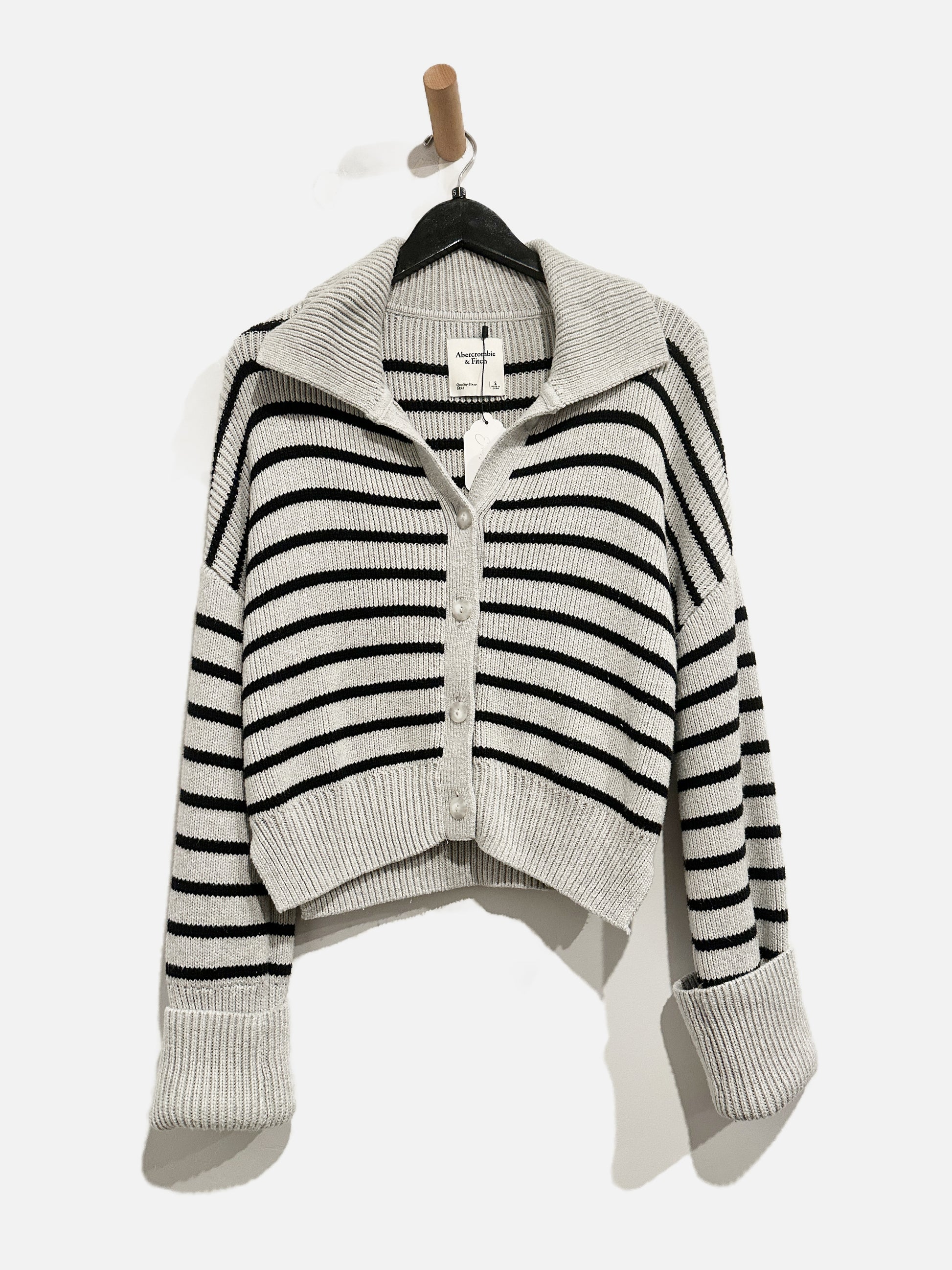 Abercrombie & Fitch Gray and Black Stripe Button Down Sweater - Small