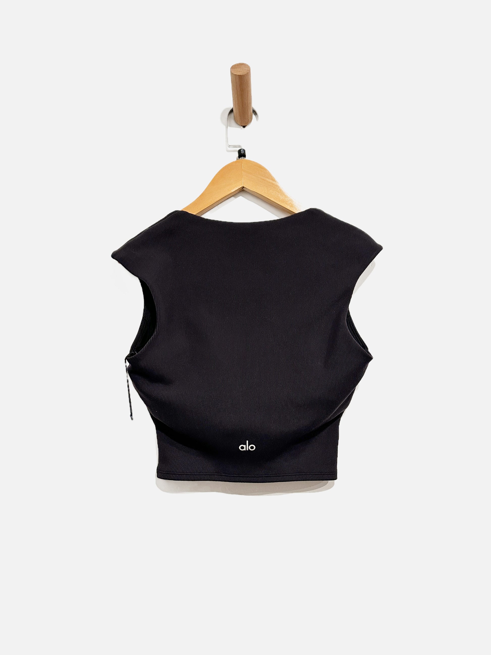 Alo Yoga Black Ribbed Sweetheart Short Sleeve - Small