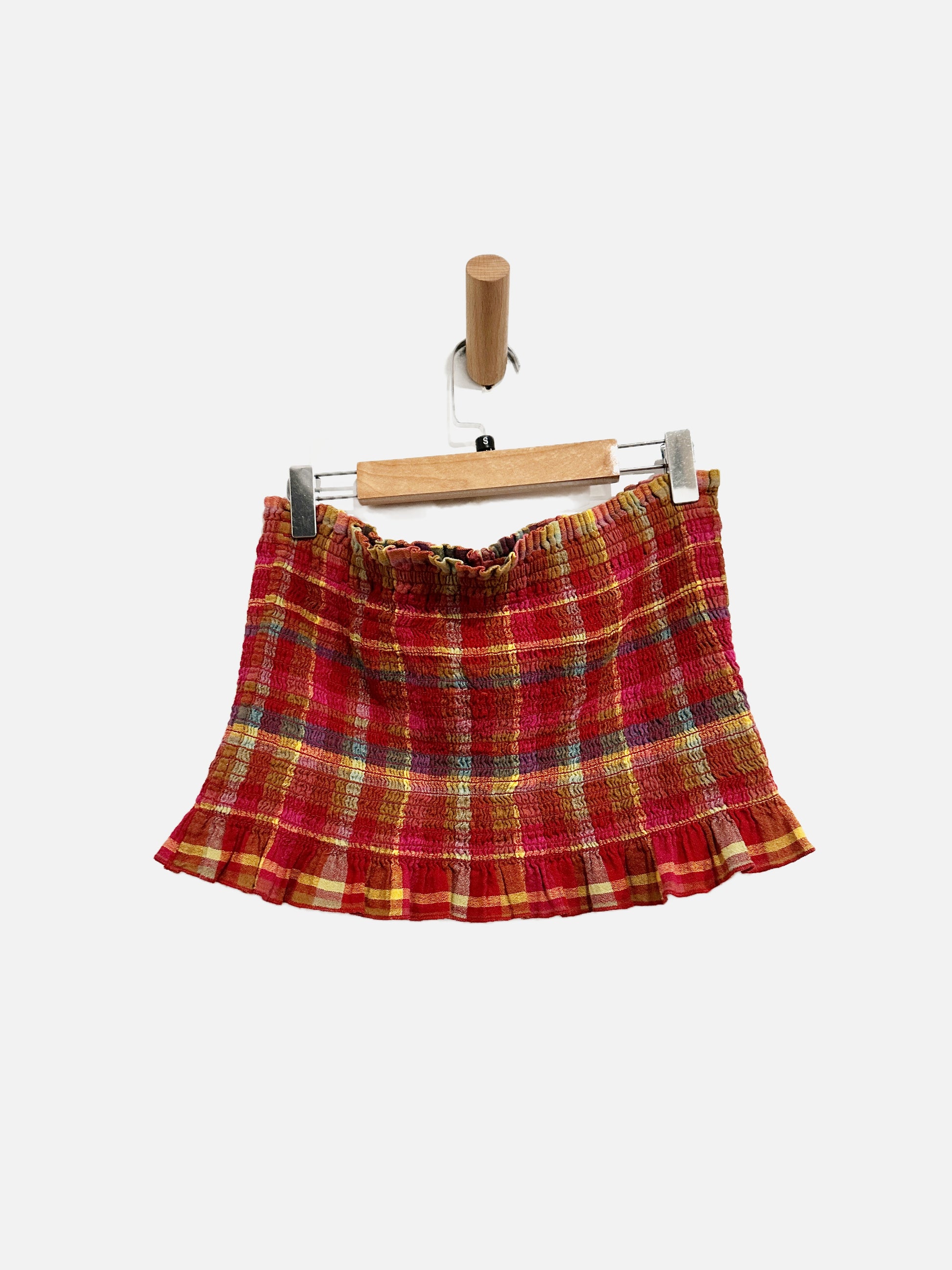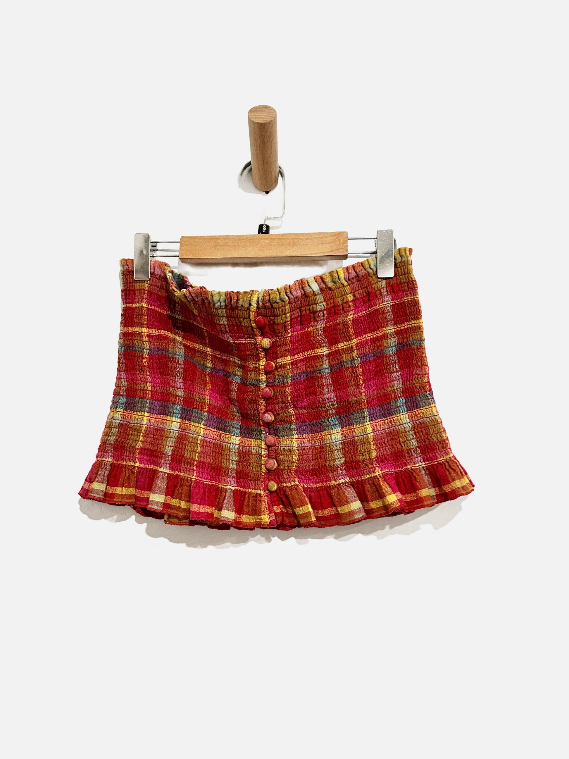 American Eagle Pink Plaid Smocked Tube Top - Small