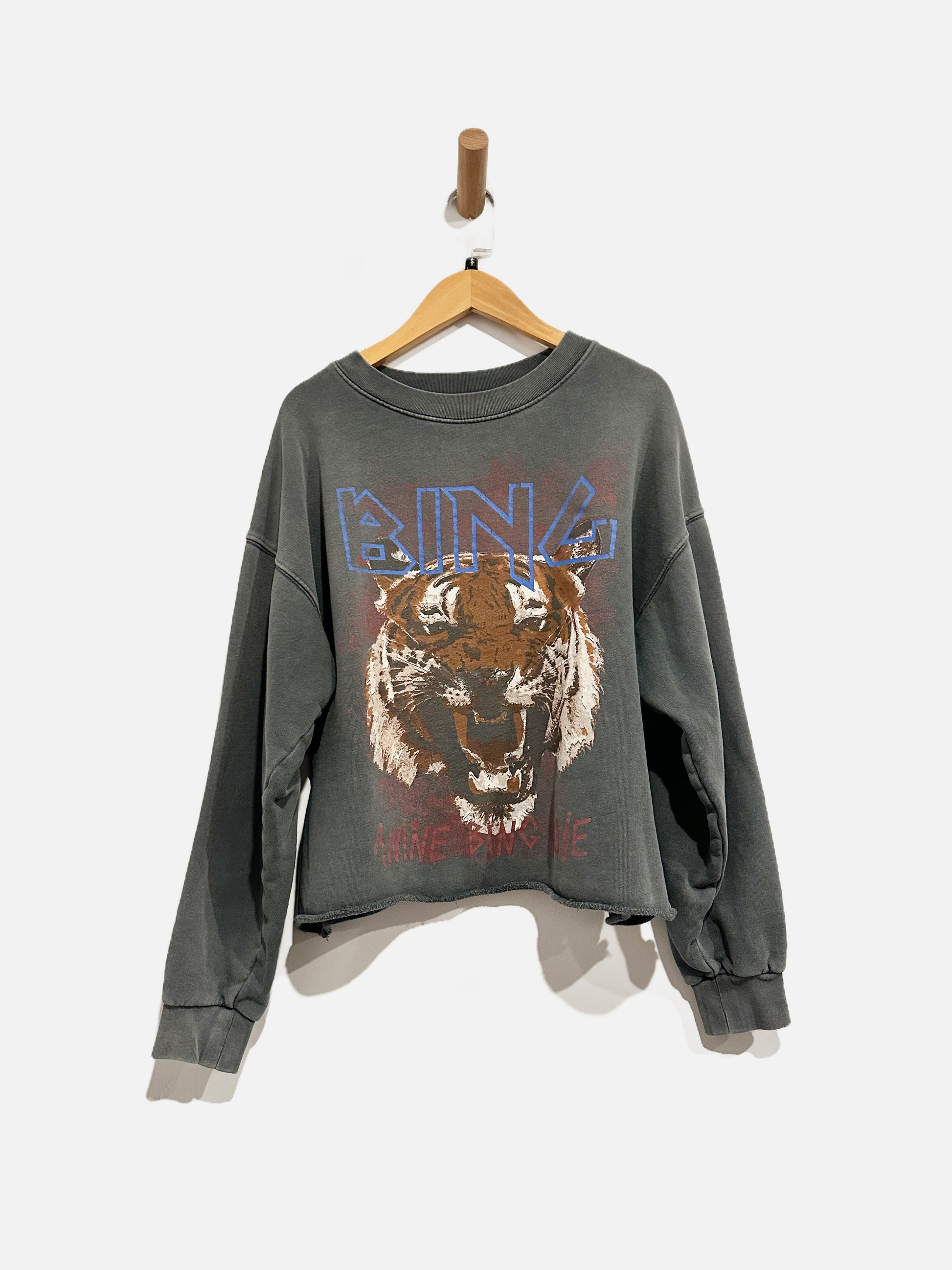 Anine Bing Grey Cropped Tiger Crewneck - Small