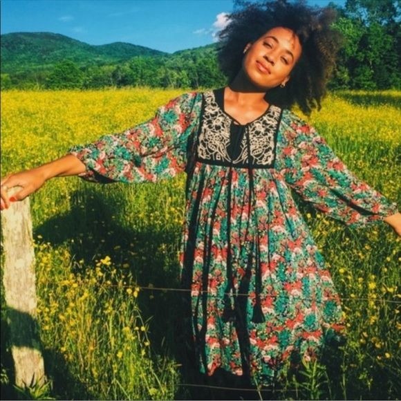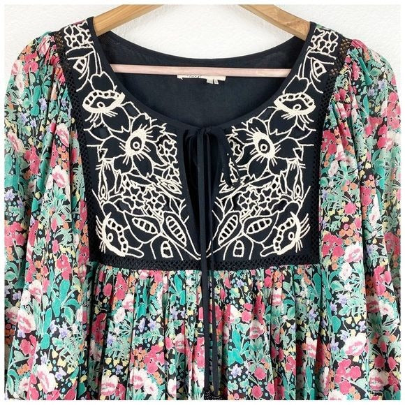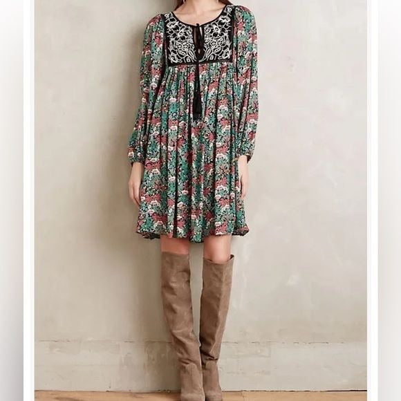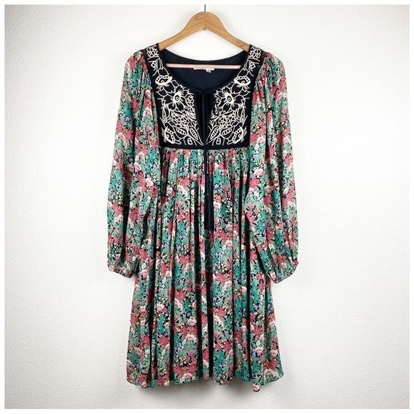 Anthropologie Floreat Ottawa Floral Embroidered LS Dress Size Small