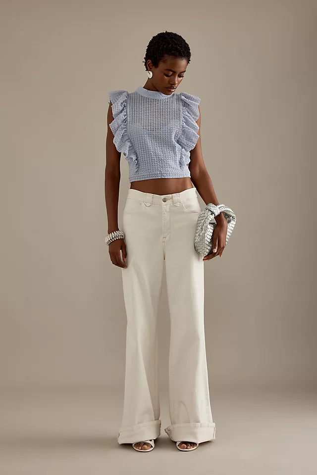 Anthropologie Maeve Blue Ruffle Tank - XS
