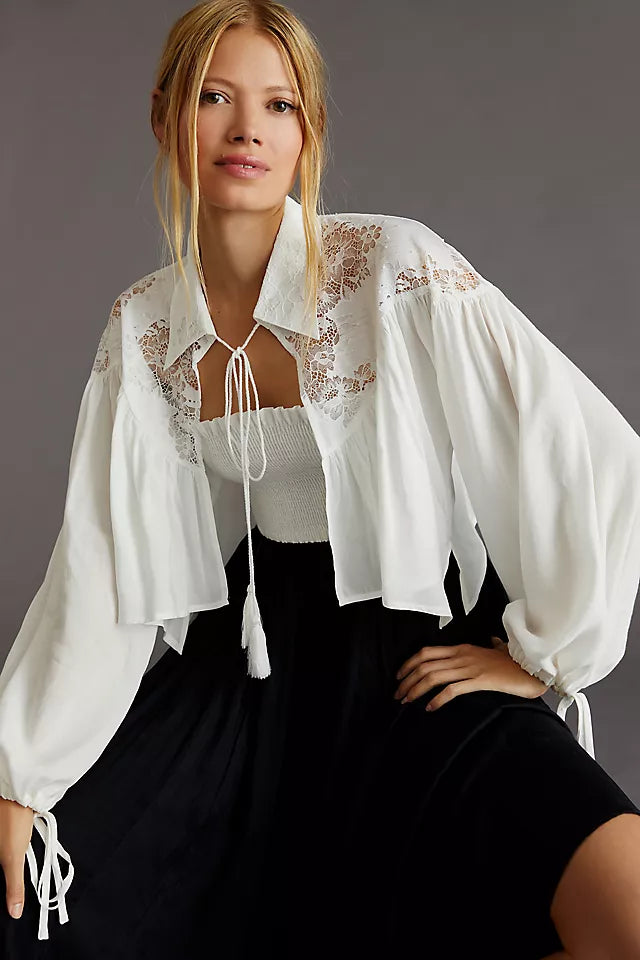 Anthropologie Maeve Cropped Lace Shrug - 0S
