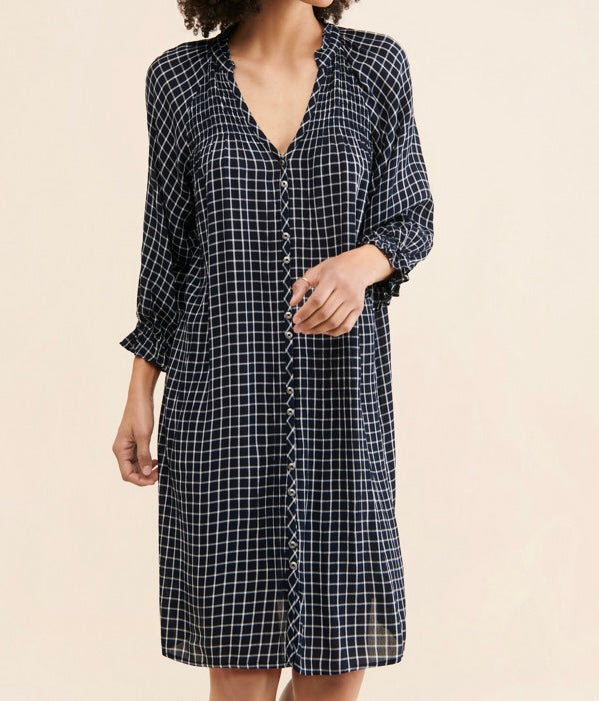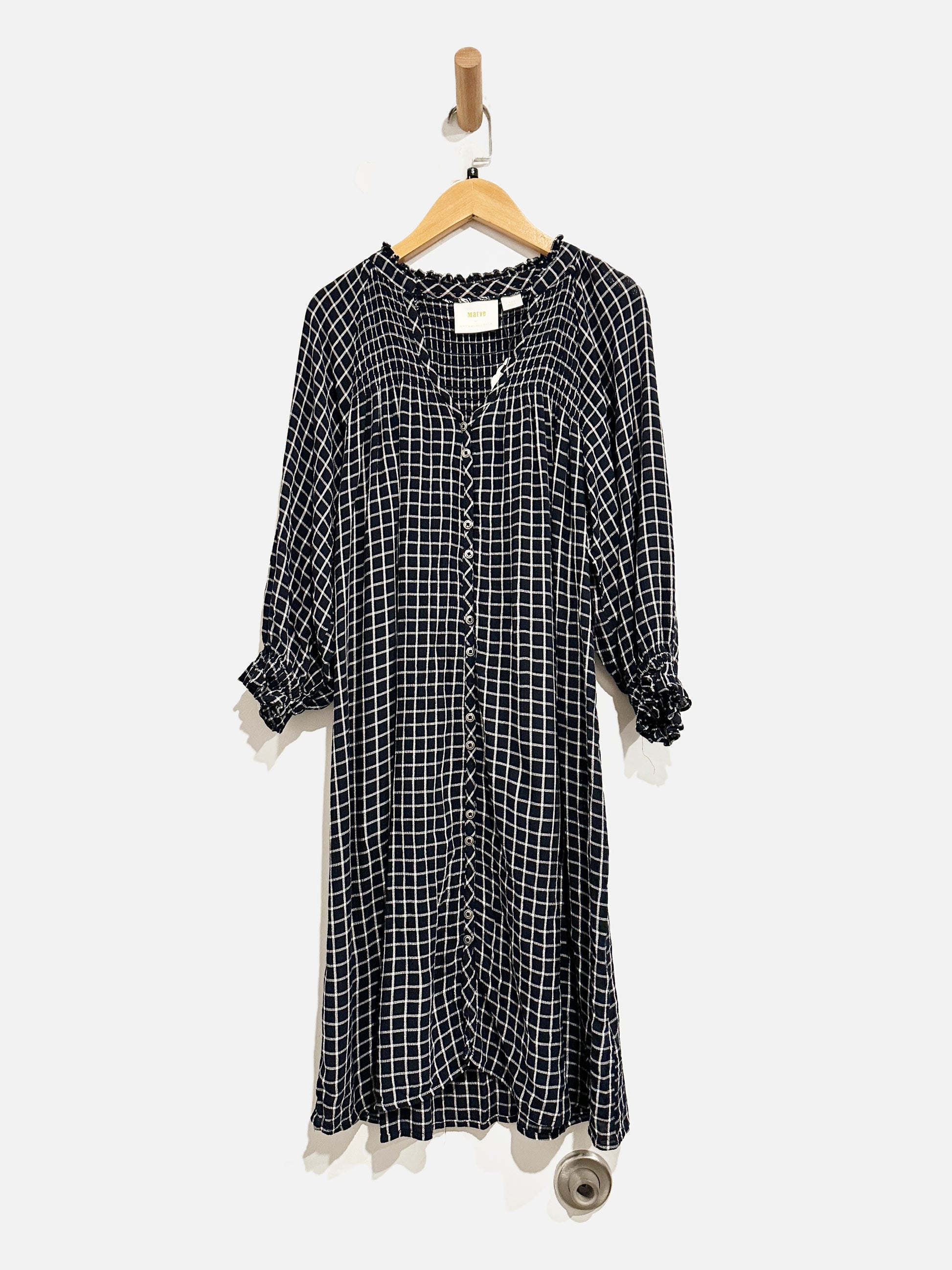 Anthropologie Maeve Navy and White Plaid Shirt Dress - XS