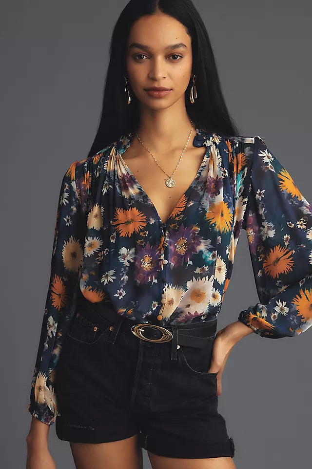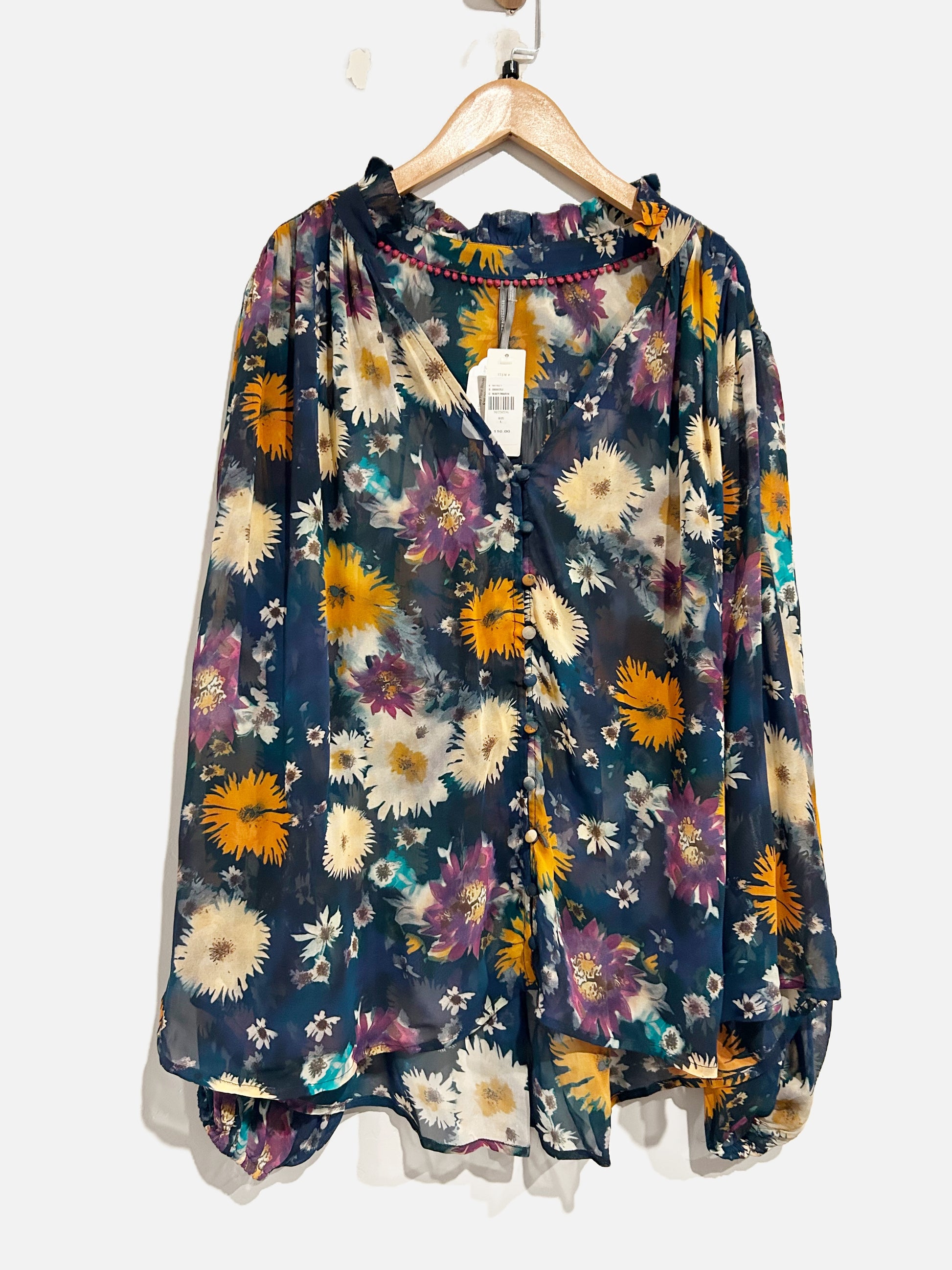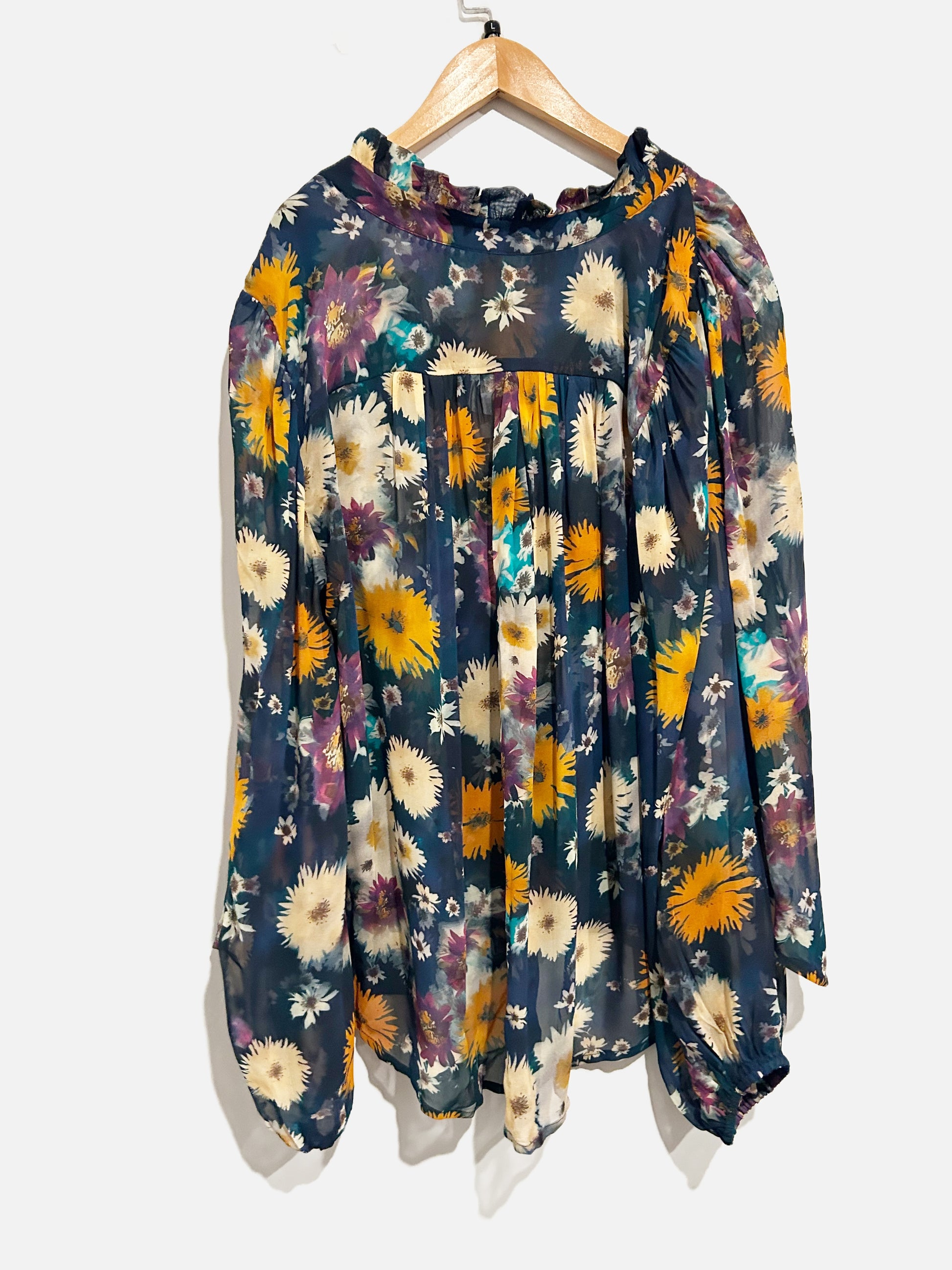 Anthropologie NWT The Estella Navy Floral Sheer Blouse - Large
