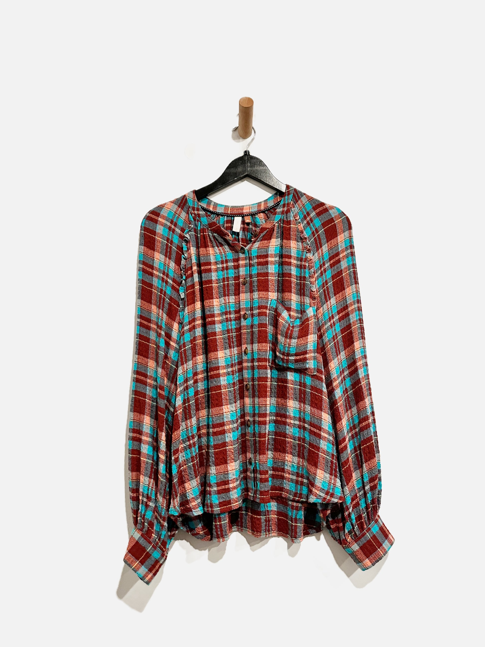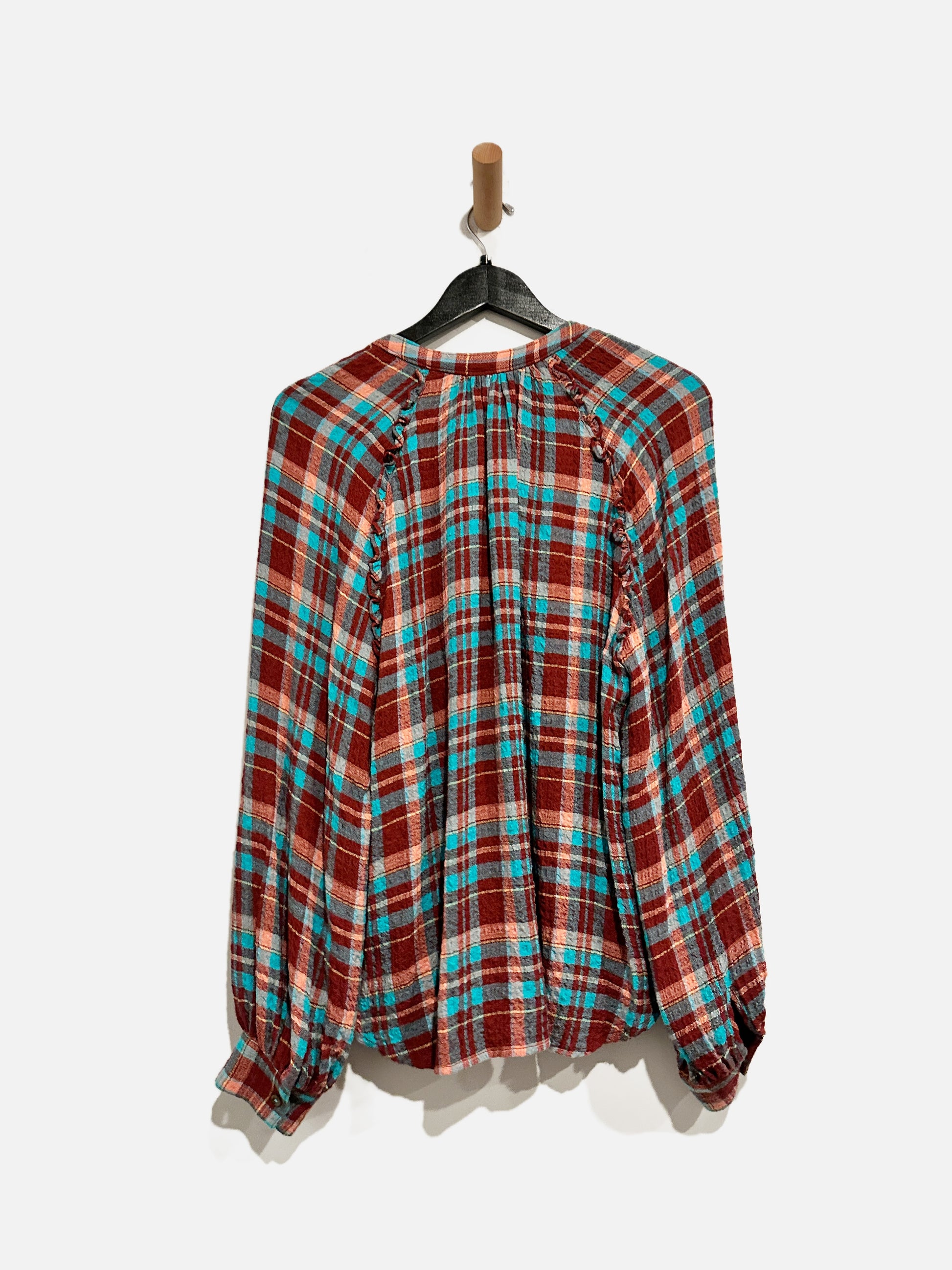 Anthropologie Pilcro Red and Blue Ruffle Blouse - Large
