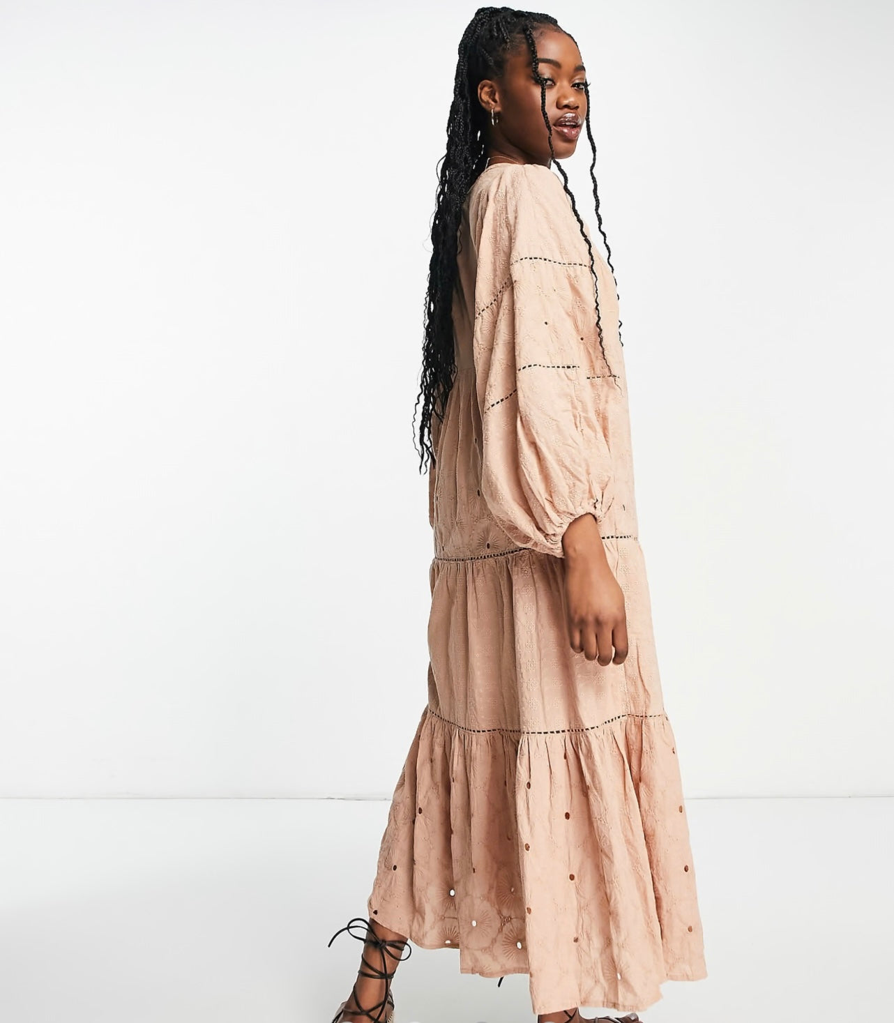 Asos Design Pink Floral Eyelet Maxi Dress - 4