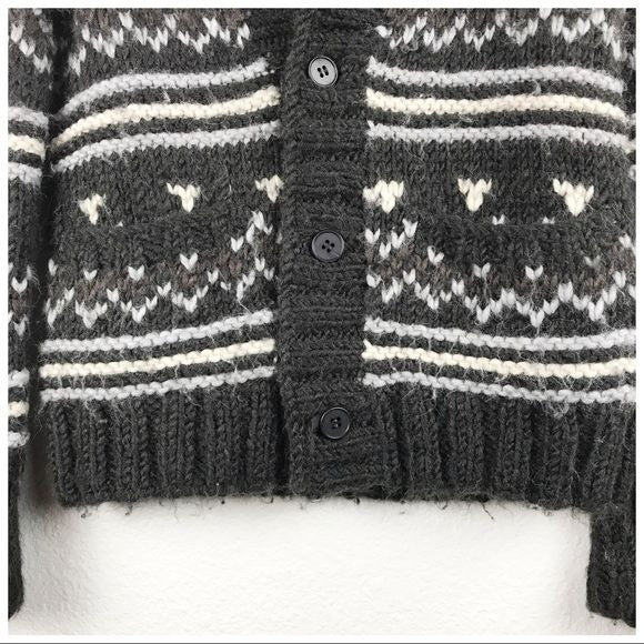Bonpoint Gray Printed Chunky Knit Cardigan Size 6