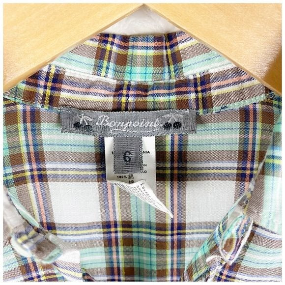 Bonpoint Green and Brown Plaid Button Down Size 6