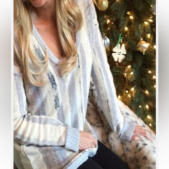 Chaser Pastel Striped Tunic Sweater Size Small