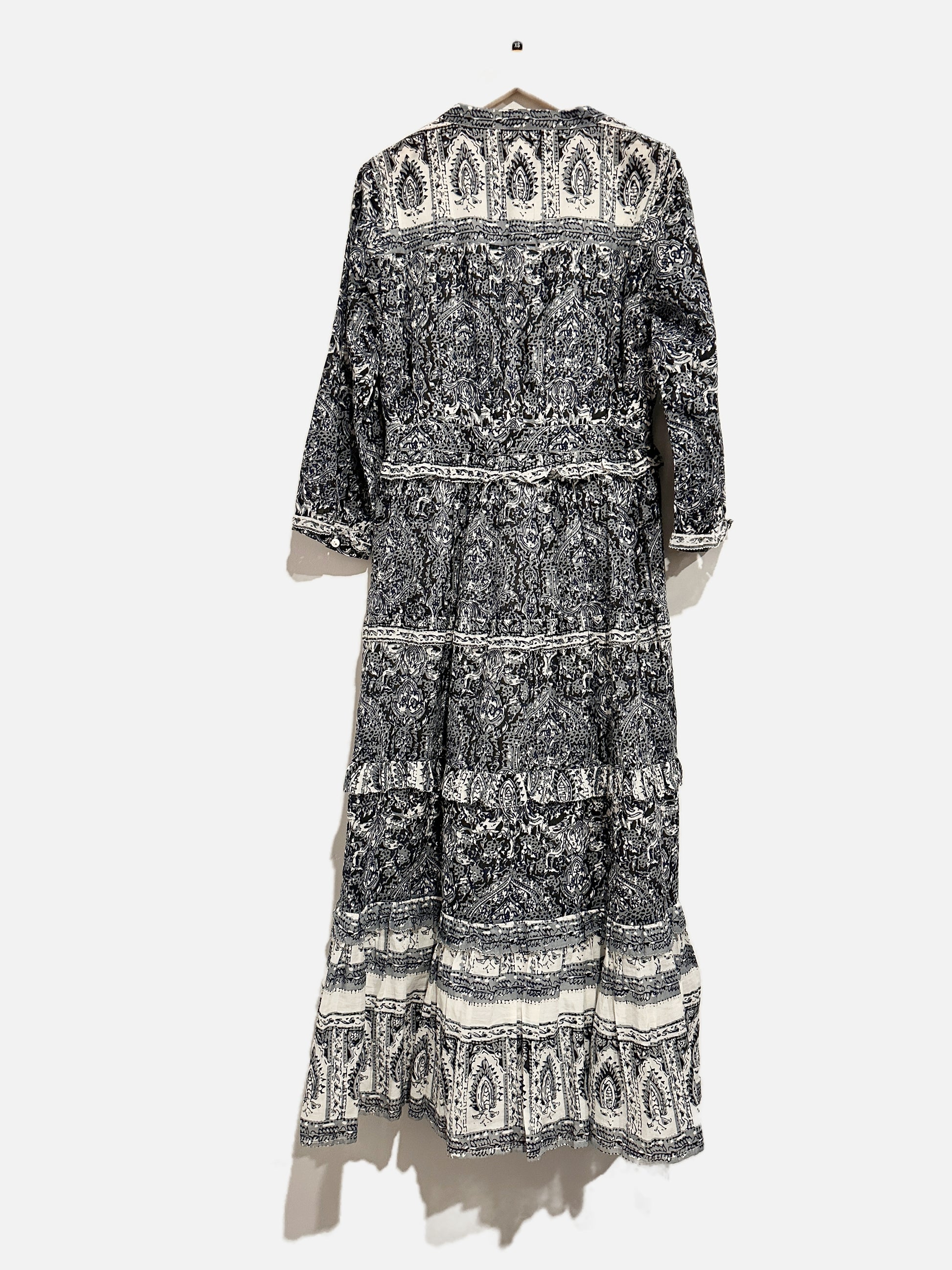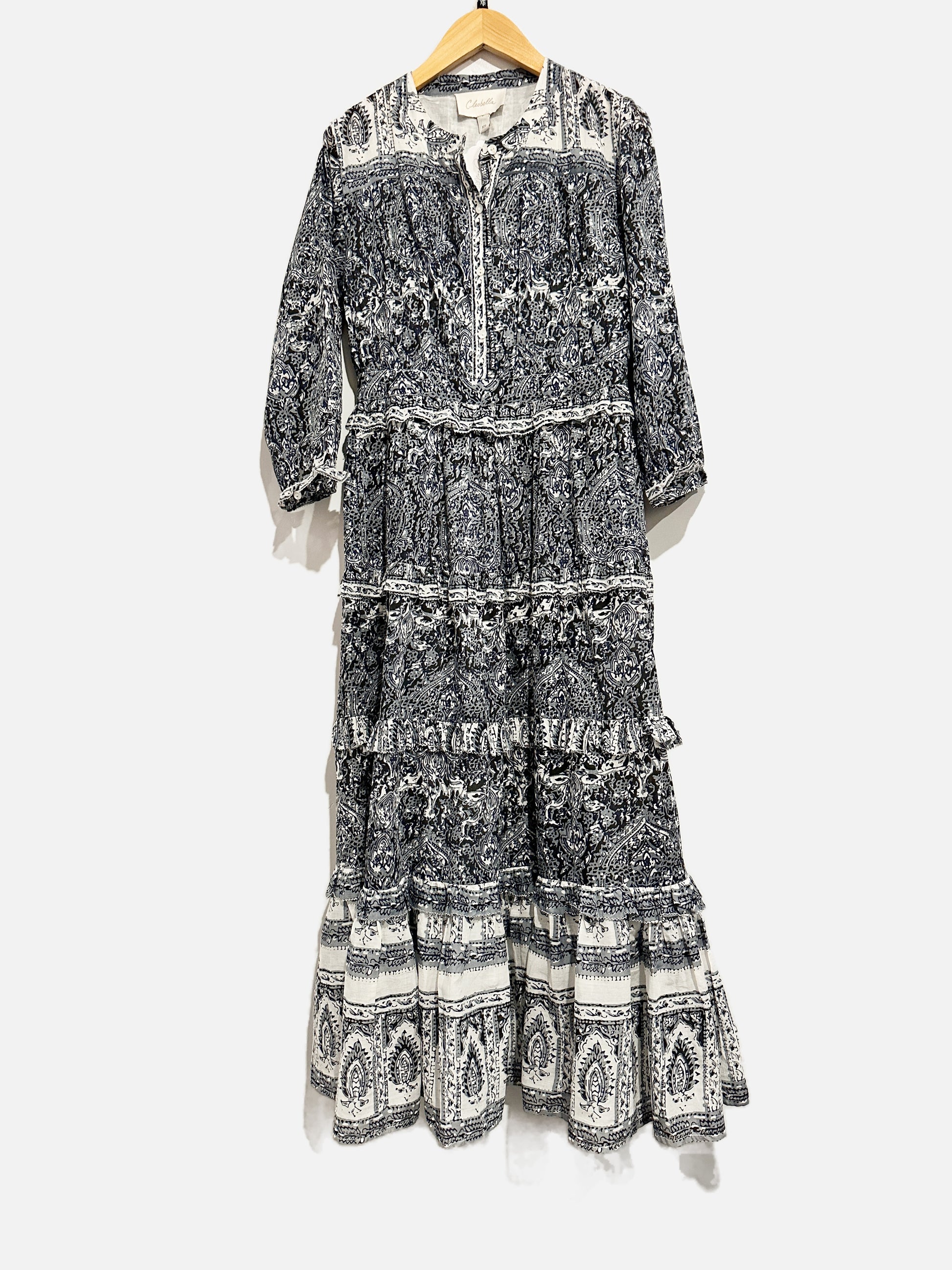 Cleobella Dalia Black and White Paisley Print Midi Dress - XS