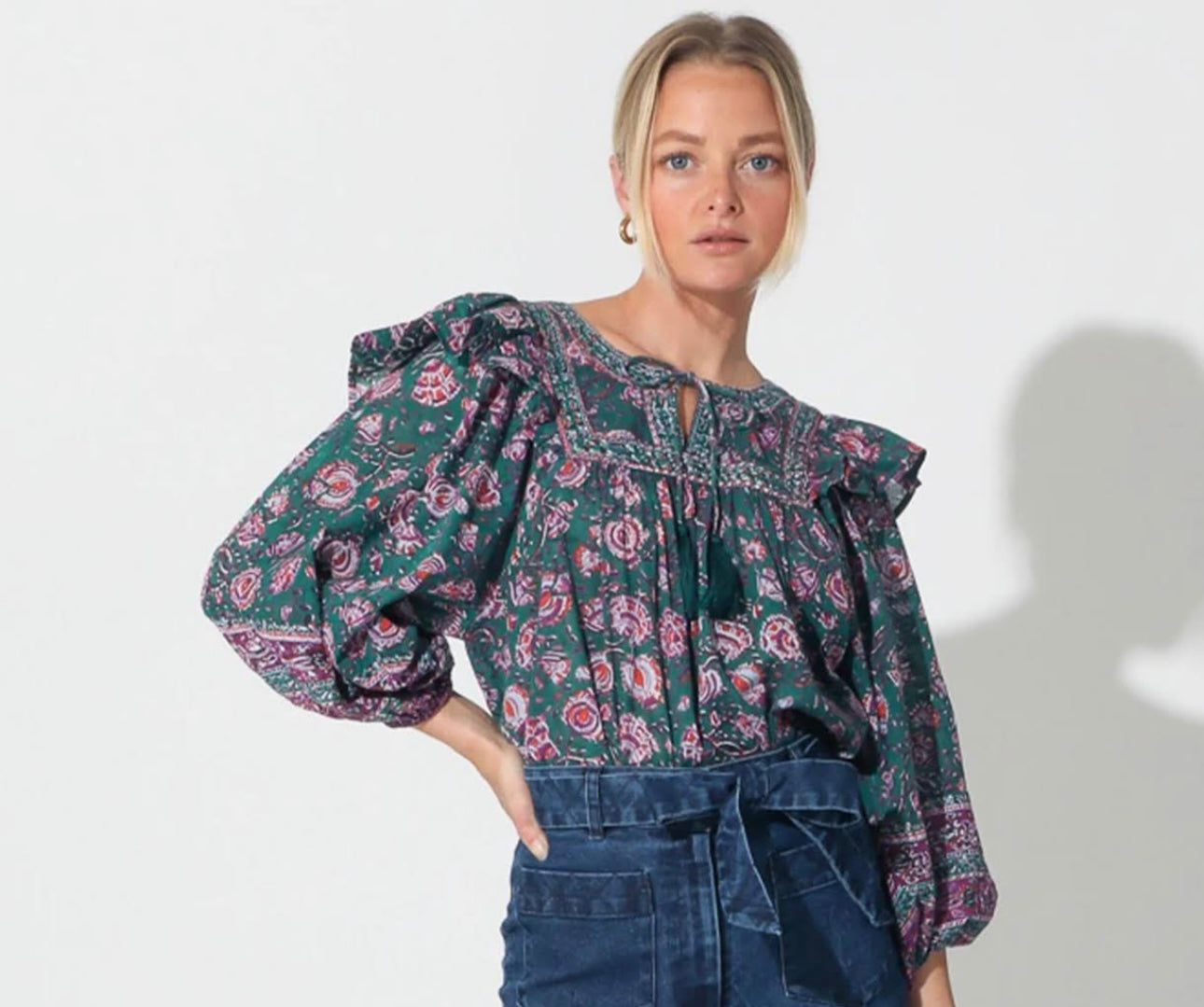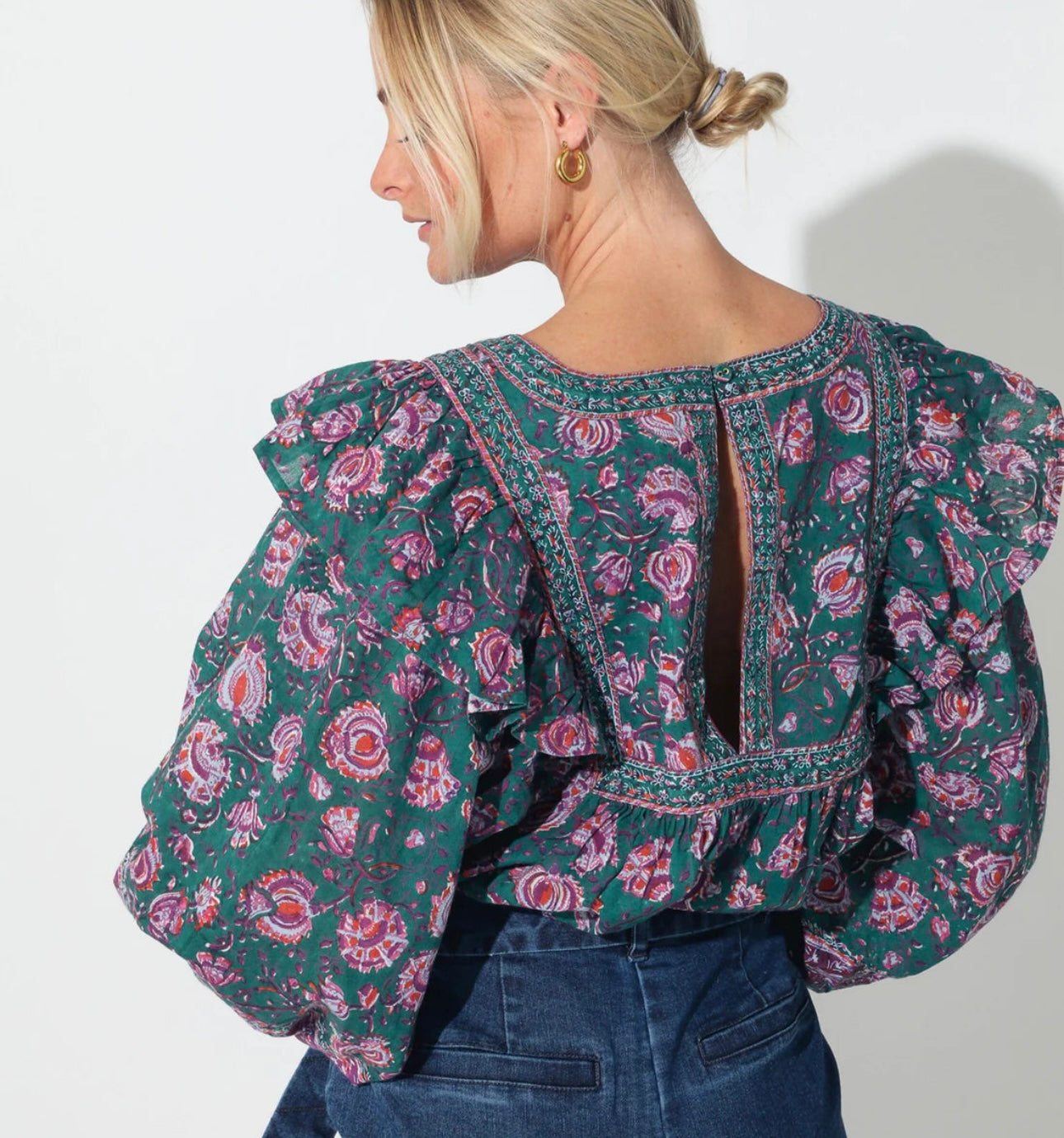 Cleobella Mylah Green Floral Blouse - XS