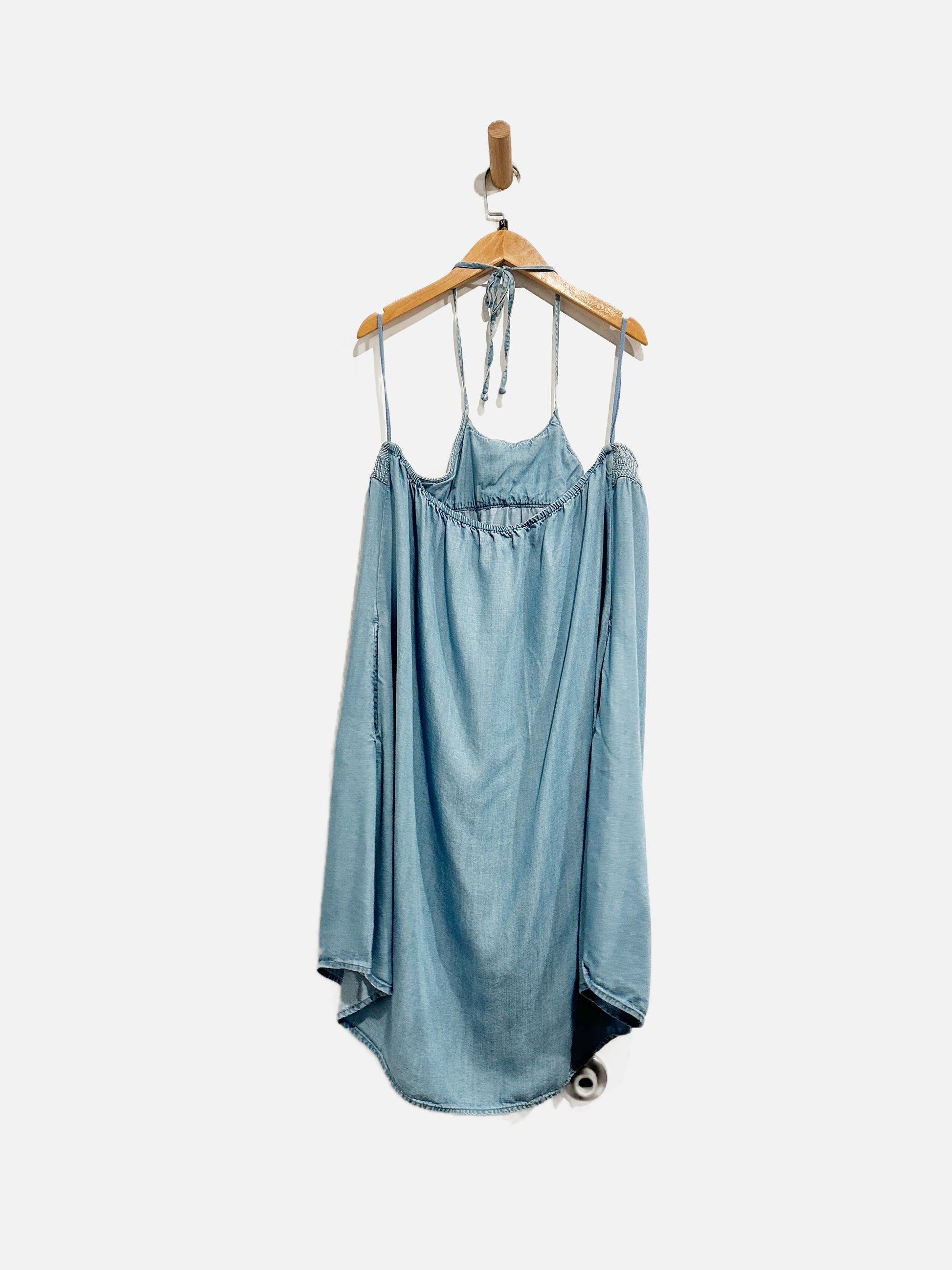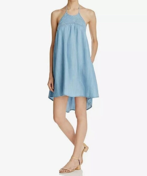 Cloth & Stone Chambray Embroider Halter Mini Dress - Medium