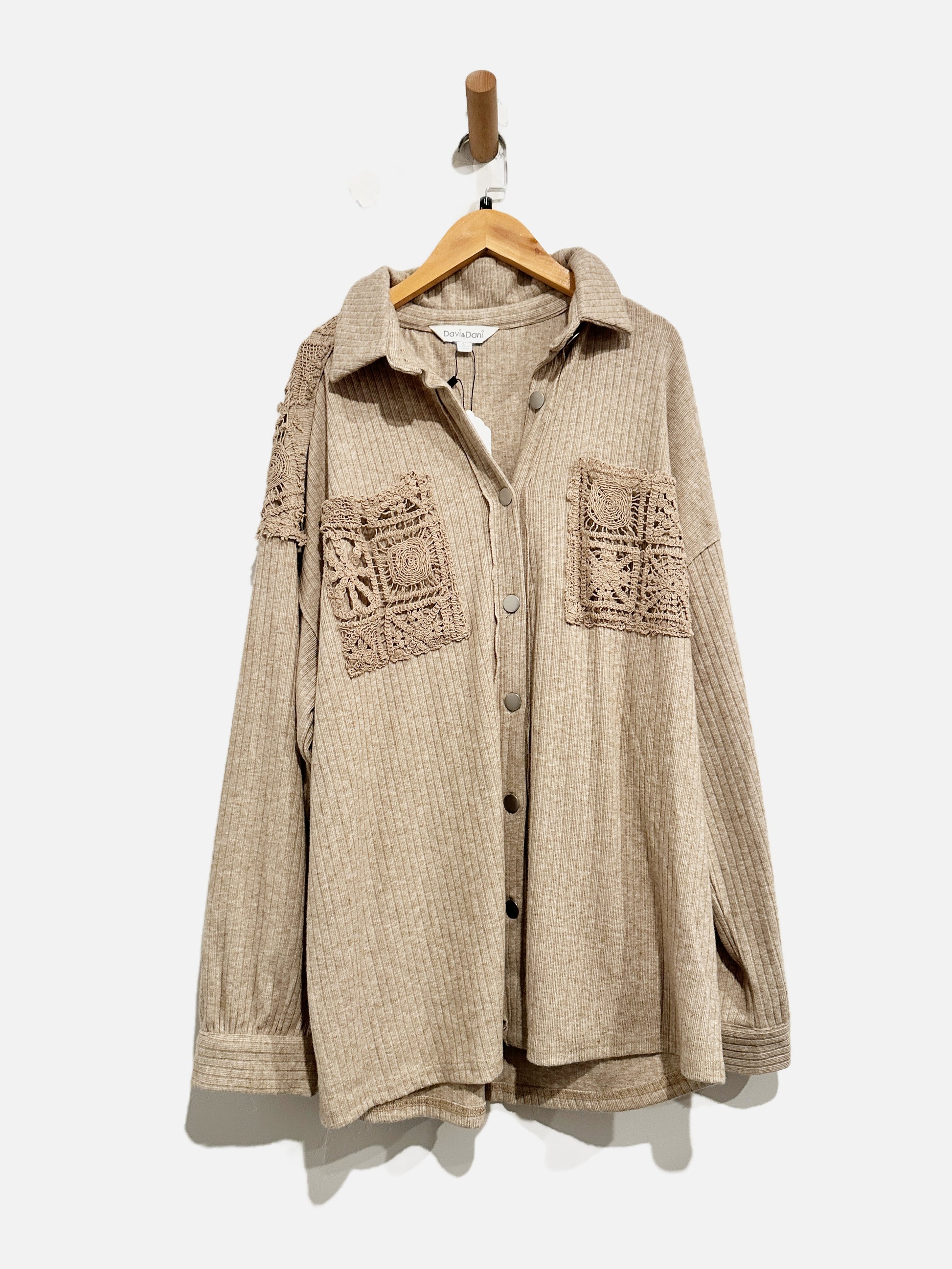 Davi & Dani Brown Crochet Insert Shacket - Large